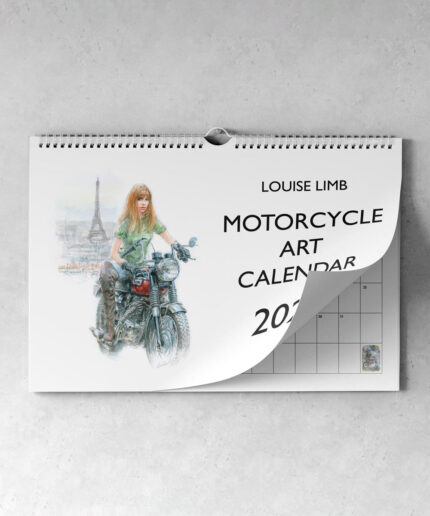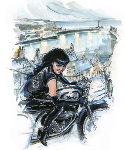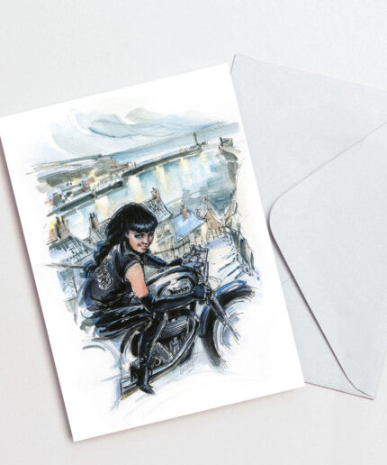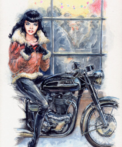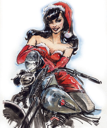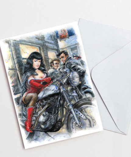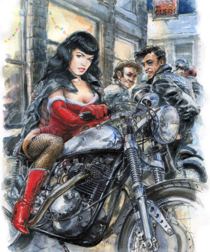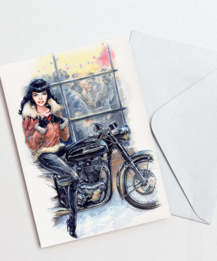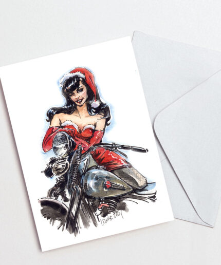 Bettie Page on her Norton – Christmas Card