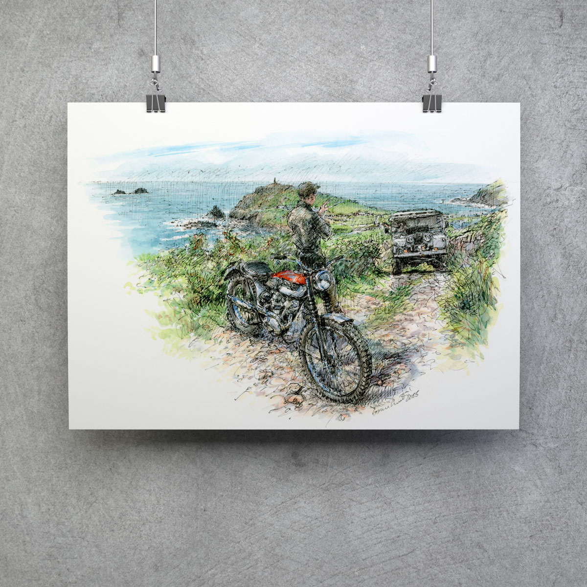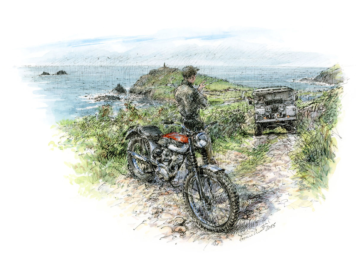 Cape Cornwall Triumph Tiger Cub and Land Rover Series One